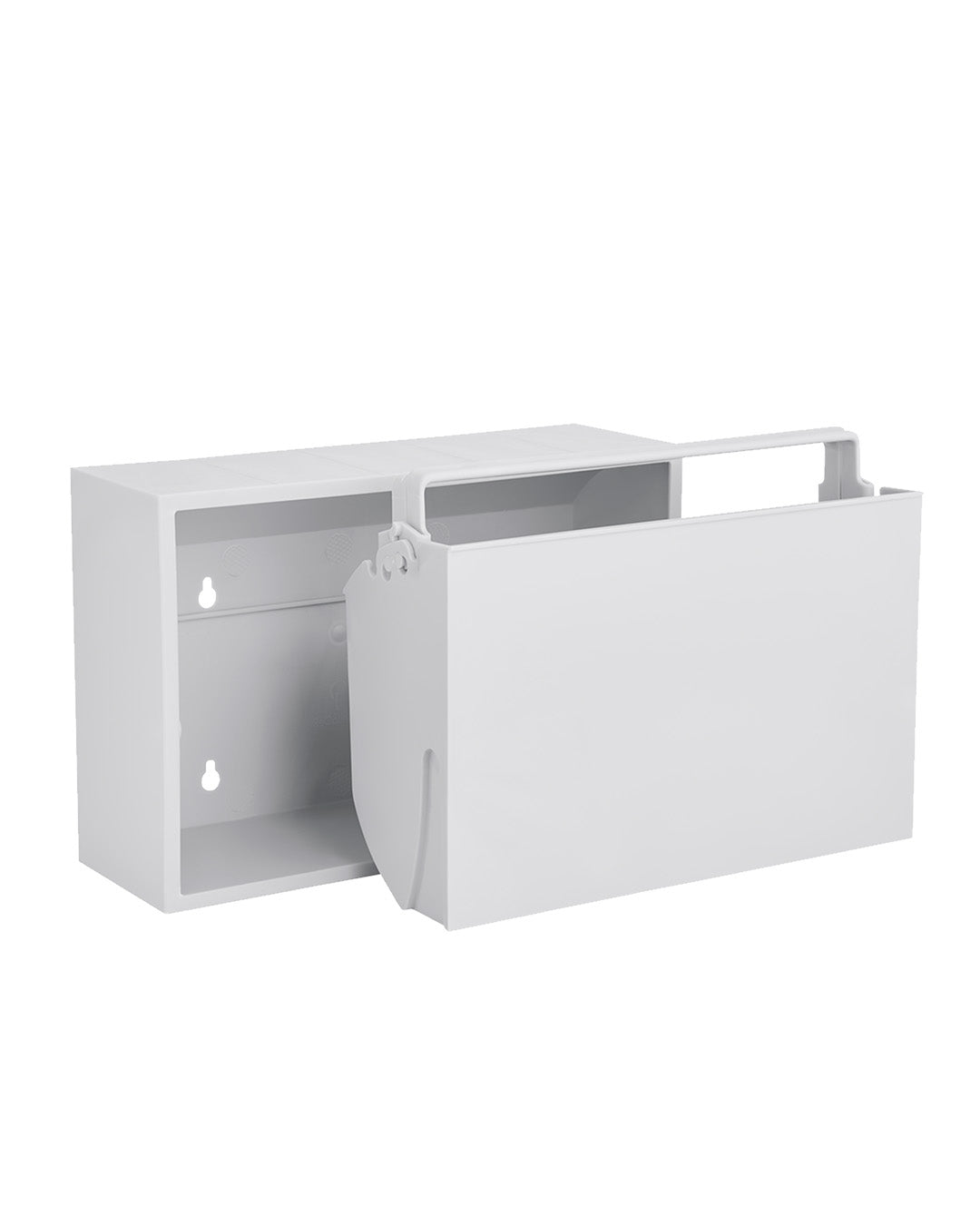 Stylish Mini Storage BoxOur small storage box is perfect as a toilet bin or for keeping your small items organized in the bathroom or other rooms in your home.The box is designed as a practical solution, making it easy to hang on the wall, and its surface can also be used as a shelf for decorative items. Our small storage box is the perfect solution for organizing your small items in a stylish and practical way. The clever tipping function, which allows you to open the box by gently pressing the bottom, also adds to the convenience and functionality of this smart storage solution.The box is made of recycled plastic with added minerals, and we have chosen to produce it in Denmark to avoid long transportation distances.Its small size makes it perfect for storing, sorting, and organizing everything from hairpins and elastics to jewelry, children's markers, or other small items. The box is available in different colors, so you can choose the one that best suits your home and personal style. The sturdy material ensures that the box is durable and can be used for many years to come.In short, our small storage box is the ideal solution for organizing your small items in a stylish and practical way.Materials and DimensionsRecycled PP plastic and mineralsWidth: 30 cm Height: 20 cmDepth: 10 cmWeight: 1.2 kgVolume: 4 litersMaintenanceClean the storage box with a soft, damp cloth or sponge. If necessary, add a mild dish soap or regular soap. Wipe dry with a clean, dry cloth.InstallationMount with 4 screws. Alternatively, double-sided tape or nano tape can also be used for mounting, but be sure to read the user manual thoroughly before use. ReCollector cannot take responsibility for the use of tape for mounting.