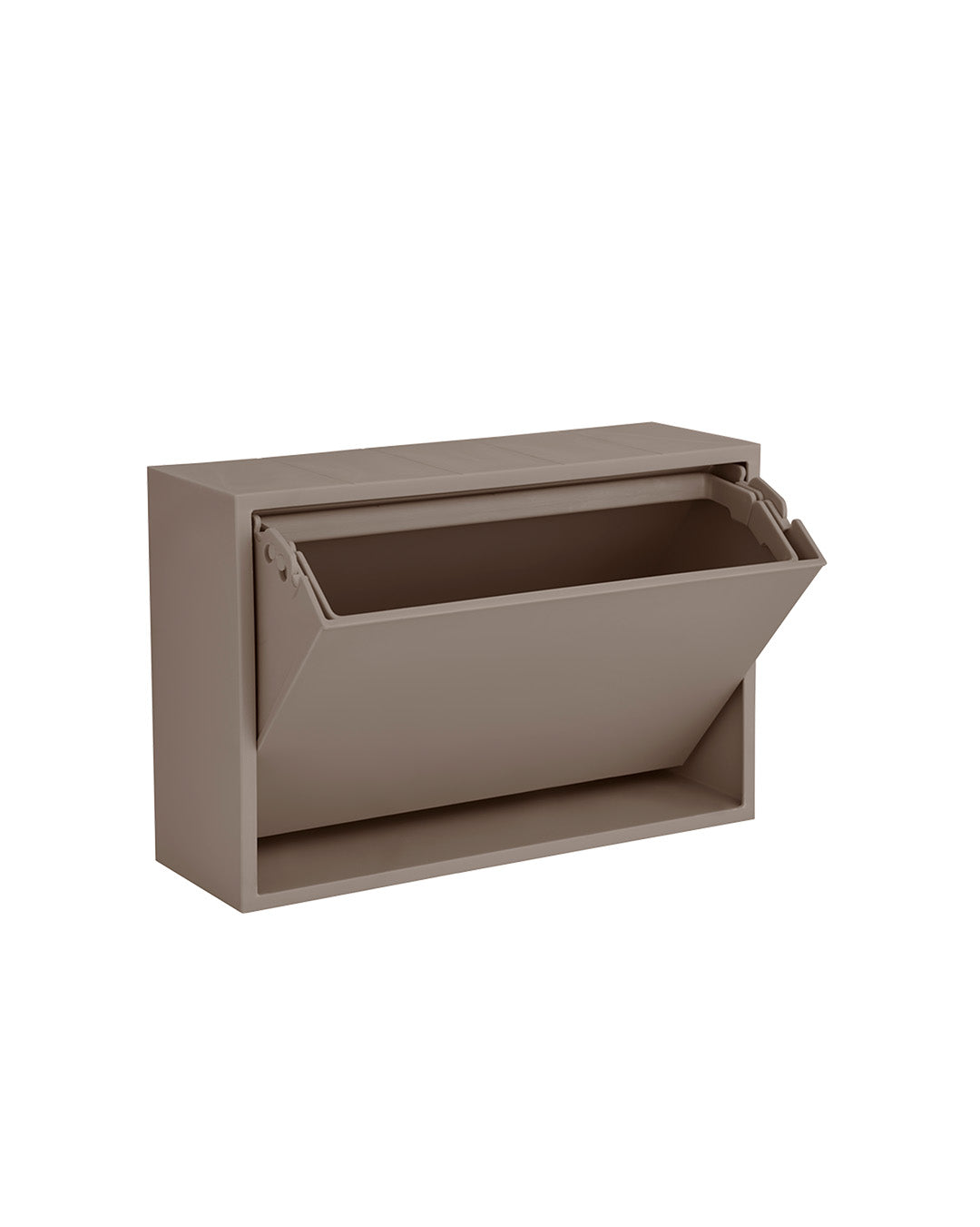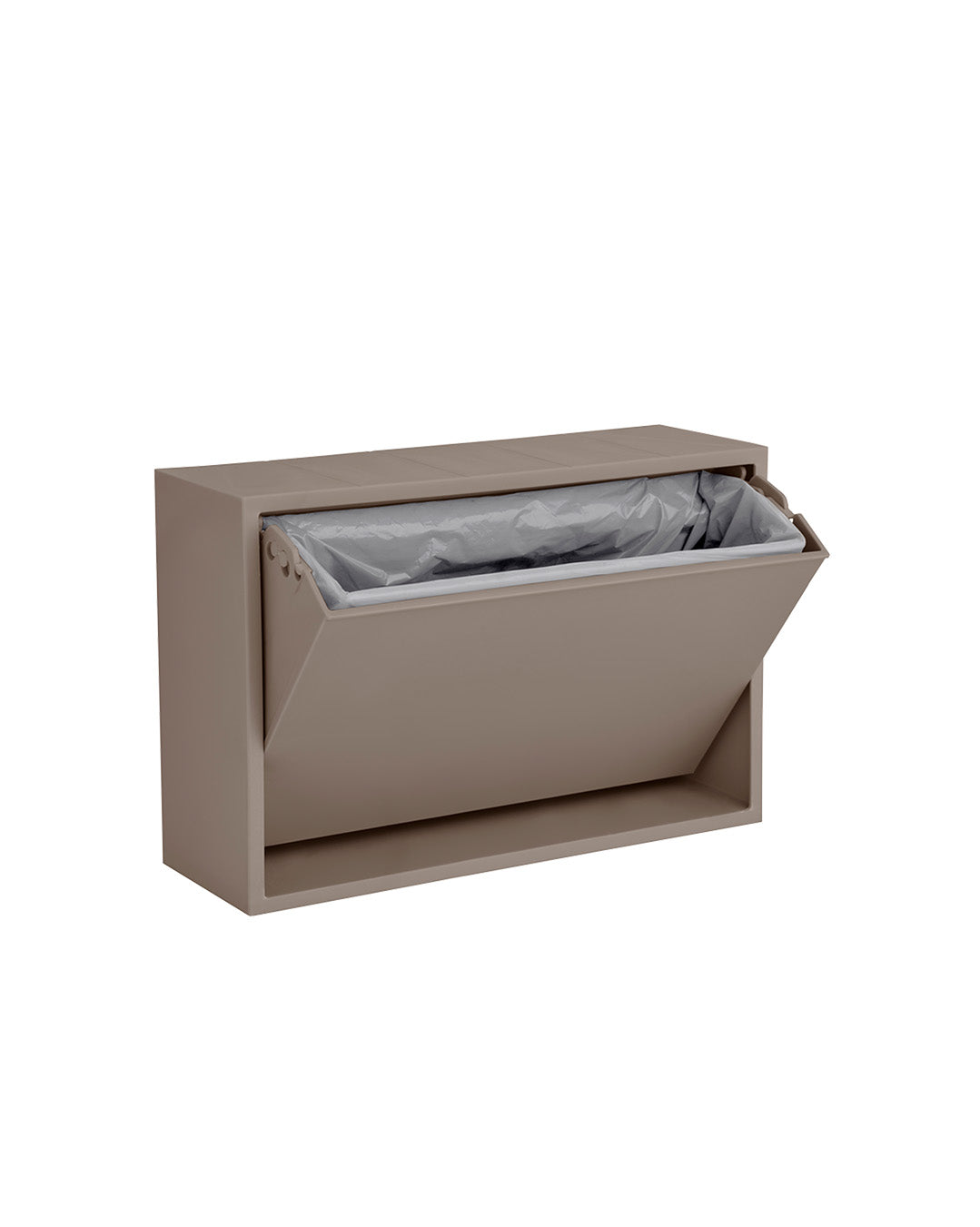 Stylish Mini Storage BoxOur small storage box is perfect as a toilet bin or for keeping your small items organized in the bathroom or other rooms in your home.The box is designed as a practical solution, making it easy to hang on the wall, and its surface can also be used as a shelf for decorative items. Our small storage box is the perfect solution for organizing your small items in a stylish and practical way. The clever tipping function, which allows you to open the box by gently pressing the bottom, also adds to the convenience and functionality of this smart storage solution.The box is made of recycled plastic with added minerals, and we have chosen to produce it in Denmark to avoid long transportation distances.Its small size makes it perfect for storing, sorting, and organizing everything from hairpins and elastics to jewelry, children's markers, or other small items. The box is available in different colors, so you can choose the one that best suits your home and personal style. The sturdy material ensures that the box is durable and can be used for many years to come.In short, our small storage box is the ideal solution for organizing your small items in a stylish and practical way.Materials and DimensionsRecycled PP plastic and mineralsWidth: 30 cm Height: 20 cmDepth: 10 cmWeight: 1.2 kgVolume: 4 litersMaintenanceClean the storage box with a soft, damp cloth or sponge. If necessary, add a mild dish soap or regular soap. Wipe dry with a clean, dry cloth.InstallationMount with 4 screws. Alternatively, double-sided tape or nano tape can also be used for mounting, but be sure to read the user manual thoroughly before use. ReCollector cannot take responsibility for the use of tape for mounting.