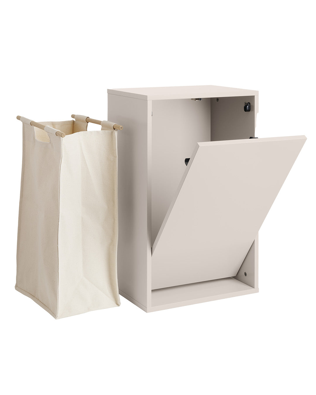 Stylish Laundry BoxThe wall-mounted laundry box is designed with a focus on functionality and a simple, Nordic expression. The wall-mounted design saves space, facilitates floor cleaning, and prevents moisture from the bathroom floor. Additionally, it ensures a decorative and neat solution for your home. With the smart push-lock, you can easily open the box, sort the laundry, and transport it from A to B. The solution is also ideal for the teenage room or bedroom, where the laundry basket is a stylish addition that solves a practical challenge in everyday life. The surface can also be used as a shelf for decorative items. The laundry box is produced in Denmark and is made of FSC-certified wood, and the linen-colored bag in the box is sewn from GOTS-certified fabric and laminated with a light plastic layer to keep moisture from wet laundry. All in all, ReCollectors' wall-mounted laundry basket is the perfect combination of simplicity, style, and functionality for your home.The laundry box is available in four beautiful colors and an oak veneer version. Material and DimensionsMaterial: FSC certified woodWidth: 43 cmHeight: 70 cmDepth: 30 cmWeight: 12.6kgThe color has a gloss level of 30Note: We have chosen to flat-pack our laundry box in order to streamline transportation and prevent shipping damages, ultimately reducing our CO2 footprint. Therefore, the box is not delivered fully assembled, but with our detailed guide, it is easy and straightforward to assemble and install.MaintenanceThe sorting box is cleaned with a soft, damp cloth or sponge. Add a mild detergent or soap if necessary. Wipe dry with a clean, dry cloth. The textile bag can be washed at 30 degrees.